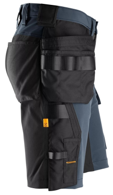 Body-mapped full-stretch korte broek die winddichte secties combineert met ventilerende delen voor bescherming bij winderig weer en bewegingsvrijheid. Ideaal voor actieve werkdagen.