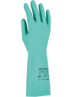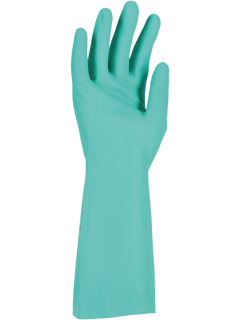 Een veelzijdige, chemisch bestendige handschoen van 0,38 mm/14,9 mil dun nitriel, geschikt voor alles van huishouden tot aan chemische industrie. Uitstekende grip dankzij het diamantgrippatroon. Latexvrij. 12 paar/bundel. 144 bundels/verpakking.