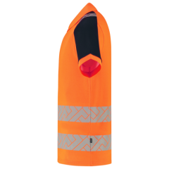 Het Tricorp Poloshirt High Vis Redefined van Tricorp is ontworpen voor professionals die geen concessies doen aan veiligheid, comfort en duurzaamheid. Dit unisex poloshirt is vervaardigd uit een slimme combinatie van 55% biologisch katoen en 45% gerecycled polyester en een heeft een doekgewicht van 180 g/m2, waarbij het katoen aan de binnenzijde zorgt voor extra zachtheid en vochtabsorptie, en het polyester aan de buitenzijde bijdraagt aan slijtvastheid en kleurvastheid. Dankzij de gesegmenteerde reflectiestriping rondom de torso en op de schouders voldoet het shirt aan de EN ISO 20471-norm voor hoge zichtbaarheid (klasse 2, XS klasse 1). De Polygiene® StayFresh technologie voorkomt geurvorming en houdt het shirt langer fris, zelfs bij dagelijks gebruik. Het Pro Wash-label garandeert dat het shirt industrieel wasbaar is op 60 graden, conform EN ISO 15797, zonder verlies van kwaliteit of zichtbaarheid, waardoor het poloshirt uitermate geschikt is voor intensieve werkomgevingen. Bovendien biedt het shirt UV-bescherming met UPF 40+, gecertificeerd volgens EN 13758-2, wat extra bescherming biedt bij buitenwerk. Dit poloshirt is niet alleen functioneel, maar ook milieubewust. Het is gecertificeerd volgens OEKOTEX-100 en GRS (Global Recycled Standard), wat de herkomst en duurzaamheid van de gebruikte materialen bevestigt. Het Poloshirt High Vis Redefined Industrieel Wasbaar is beschikbaar van maat XS tot en met 5XL en komt in de kleuren Fluor Orange-Ink en Fluor Yellow-Ink. Combineer dit poloshirt met andere items uit de High Vis Redefined-lijn voor een complete, professionele en duurzame werkoutfit.