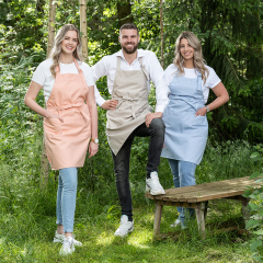 Ideaal als je kleding wilt beschermen en tegelijkertijd netjes voor de dag wilt komen. Dit halterschort is uitgevoerd in duurzaam denim (katoen/denimweefsel) en ontworpen voor industrieel wassen zodat het langer meegaat.