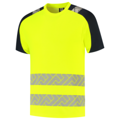 Het T-shirt High Vis Redefined van Tricorp is ontworpen voor professionals die hoge zichtbaarheid en comfort nodig hebben tijdens het werk. Dit reflecterende werkshirt is gemaakt van 100% gerecycled polyester, heeft een doekgewicht van 150 g/m2 en is voorzien van Polygiene StayFresh™ technologie, wat zorgt voor langdurige frisheid; ook tijdens lange werkdagen. Dankzij de gesegmenteerde reflectie rondom de torso en schouders biedt het T-shirt uitstekende zichtbaarheid, zonder dat dit ten koste gaat van je bewegingsvrijheid. Het voldoet aan de EN ISO 20471 klasse 2-norm (klasse 1 voor maat XS) en biedt betrouwbare bescherming tegen schadelijke UV-straling dankzij de UPF 40+ classificatie volgens de EN 13758-norm voor UV-beschermende kleding. De ademende en lichte birdseye-constructie zorgt voor extra draagcomfort, terwijl de regular fit en de ronde hals bijdragen aan een prettige pasvorm. Het T-shirt is verkrijgbaar in maten XS tot en met 5XL en leverbaar in de kleuren Fluor Orange-Ink en Fluor Yellow-Ink. Daarnaast blijft het product minimaal 50 wasbeurten van 40 graden voldoen aan de geldende veiligheidsnormen. Combineer dit T-shirt met andere items uit de High Vis Redefined-lijn voor een complete, professionele en duurzame werkoutfit.