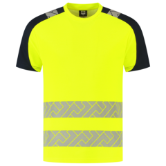Het T-shirt High Vis Redefined van Tricorp is ontworpen voor professionals die hoge zichtbaarheid en comfort nodig hebben tijdens het werk. Dit reflecterende werkshirt is gemaakt van 100% gerecycled polyester, heeft een doekgewicht van 150 g/m2 en is voorzien van Polygiene StayFresh™ technologie, wat zorgt voor langdurige frisheid; ook tijdens lange werkdagen. Dankzij de gesegmenteerde reflectie rondom de torso en schouders biedt het T-shirt uitstekende zichtbaarheid, zonder dat dit ten koste gaat van je bewegingsvrijheid. Het voldoet aan de EN ISO 20471 klasse 2-norm (klasse 1 voor maat XS) en biedt betrouwbare bescherming tegen schadelijke UV-straling dankzij de UPF 40+ classificatie volgens de EN 13758-norm voor UV-beschermende kleding. De ademende en lichte birdseye-constructie zorgt voor extra draagcomfort, terwijl de regular fit en de ronde hals bijdragen aan een prettige pasvorm. Het T-shirt is verkrijgbaar in maten XS tot en met 5XL en leverbaar in de kleuren Fluor Orange-Ink en Fluor Yellow-Ink. Daarnaast blijft het product minimaal 50 wasbeurten van 40 graden voldoen aan de geldende veiligheidsnormen. Combineer dit T-shirt met andere items uit de High Vis Redefined-lijn voor een complete, professionele en duurzame werkoutfit.